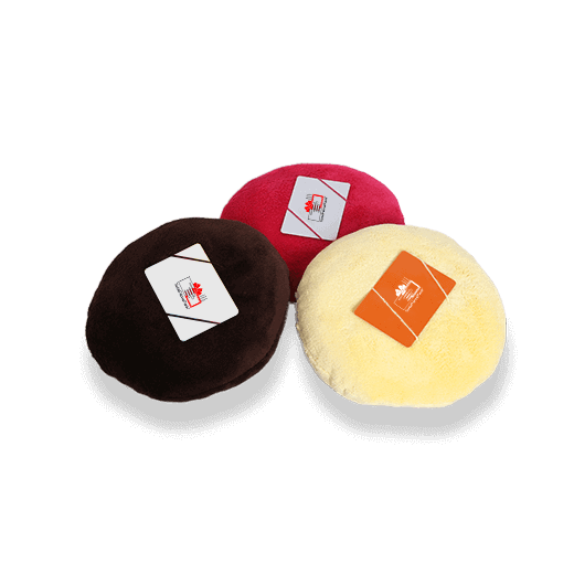 Tortadoboz méretű, egyik oldalán az ajándékkártya rögzítésére szolgáló fülecskékkel ellátott plüsspárna.