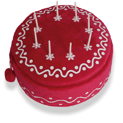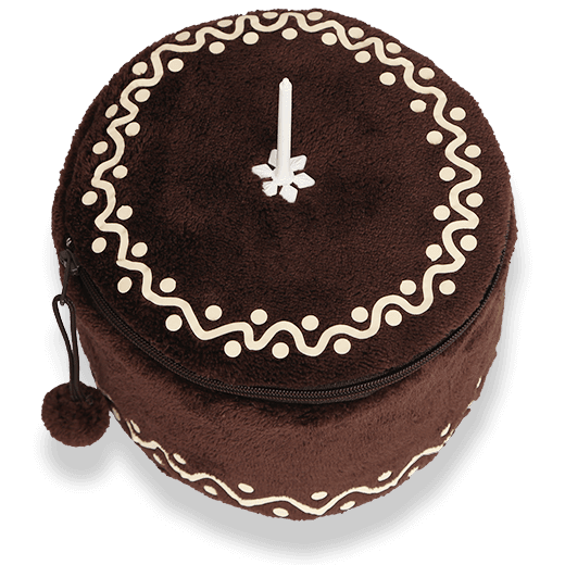 A díszgyertya a plüsstorta tetején, tetszés szerinti helyre, szükség szerinti darabszámban tűzhető fel, vehető le és helyezhető át.