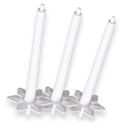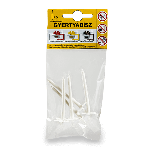A díszgyertya fehér színű, rugalmas anyagból gyártott, a TortaPárnaPack® kellékeként bevizsgált, CE engedéllyel rendelkező, oltalommal védett, Magyarországon gyártott, hazai műanyagtermék.