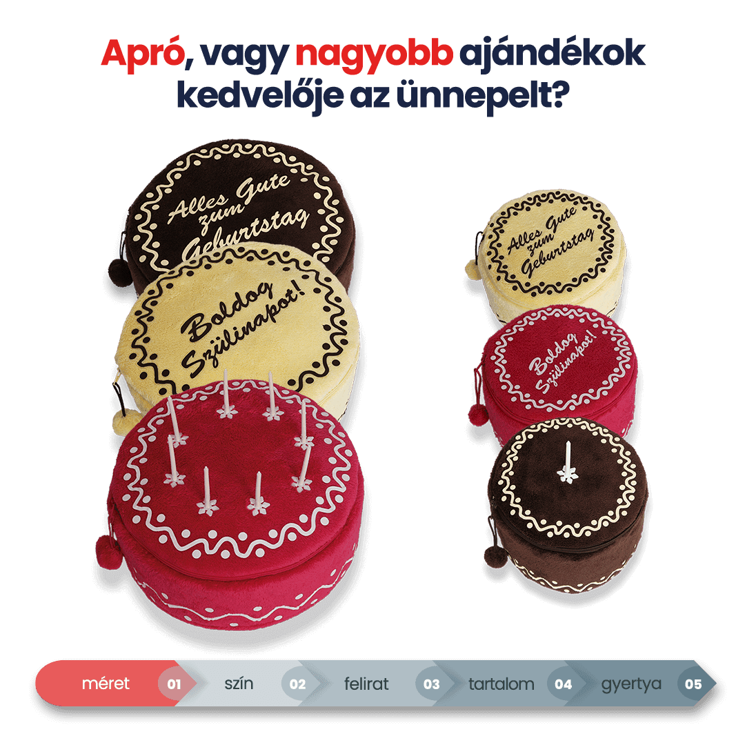 – 22 szeletes TortaPárnaPack® plüss ajándékdoboz: ~ 25x25x10 cm