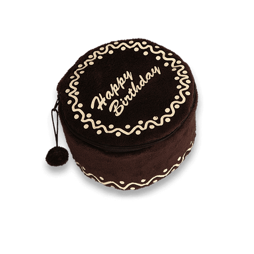 A TortaPárnaPack® bojtos cipzárral nyitható és zárható, torta formájú és díszítésű plüss-ajándékdoboz.